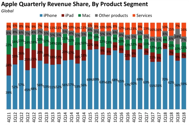 Prodej tabletů iPad v čtvrtém finančním čtvrtletí klesl o 6 % na 9,6 milionu kusů. Počet prodaných počítačů Mac byl meziročně zhruba stejný (5,3 milionu kusů).