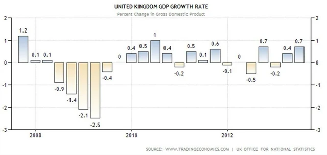 Ekonomika Spojeného království ve druhém kvartále zrychlila expanzi. Pomohly jí silnější spotřebitelské výdaje a revize růstu HDP za první čtvrtletí (+0,4 % z původně zveřejněných +0,3 %).
