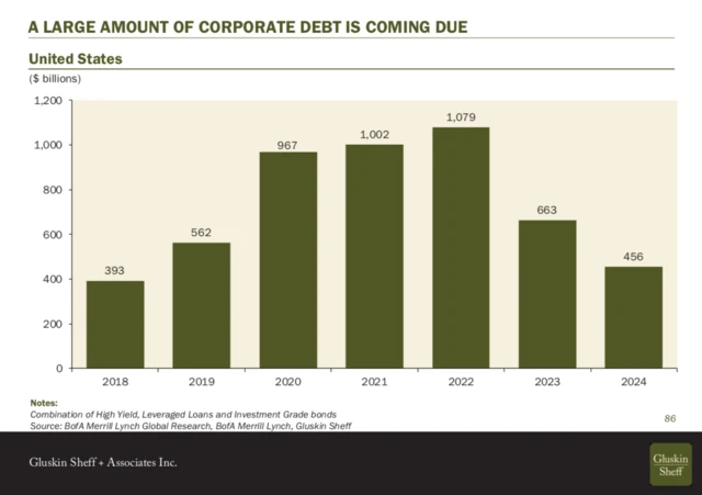 Zadlužení se netýká pouze rozvíjejících se trhů. S velkými dluhy bojují také americké firmy, které mohou mít problém zejména v nejbližších letech, kdy bude velká část dluhů splatná. To by samo o sobě nebyl takový problém, ale období nízkých úroků skončilo, a v nejbližších letech tak může mít mnoho firem starosti s drahým refinancováním.