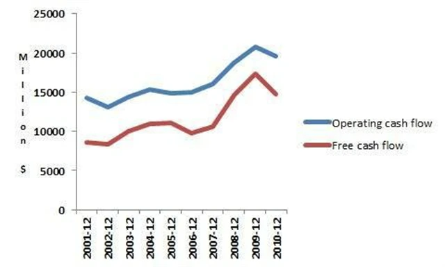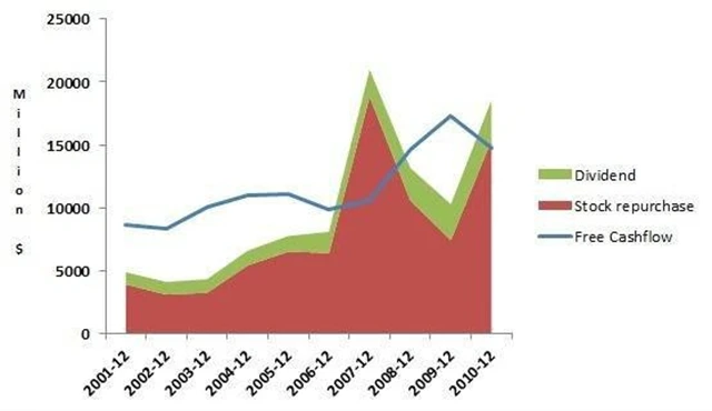 Během uplynulých deseti let se velká část volné hotovosti společnosti dostala do rukou akcionářů. V průměru šlo ročně o 10 miliard USD, a to v podobě dividend a zpětných odkupů akcií.