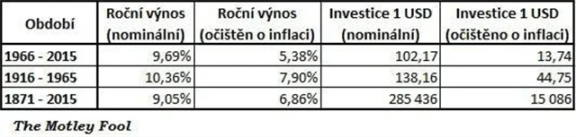 Když vezmeme v úvahu 50letý horizont, tak při investici jednoho dolaru do indexu S&P 500 na začátku roku 1966 a reinvestování všech dividend (bez započtení nákladů) bychom na konci roku 2015 měli 102,17 USD. Více než 100násobek za 50 let opravdu není špatný výsledek.
