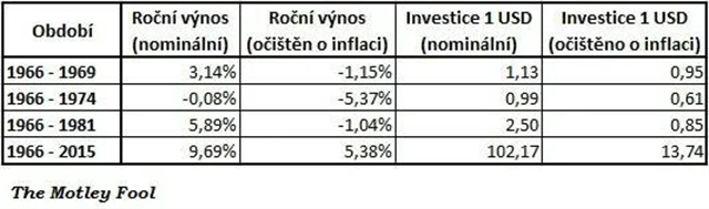 Bez započtení inflace jsou všechna období v tabulce, co se týče roční výkonnosti, podobná. Inflace ale z těchto výnosů v jednotlivých obdobích ubrala různé částky. Společně se silou složeného úročení se vliv inflace projevil v tom, že výnos z předcházejícího půlstoletí byl více než třikrát vyšší než za období začínající rokem 1966.