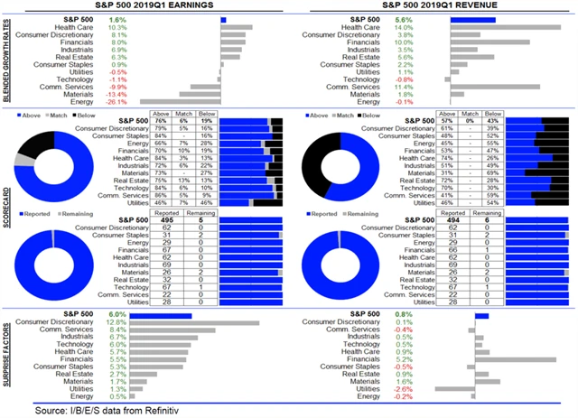 Statistika dosud oznámených výsledků amerických firem za 1Q2019