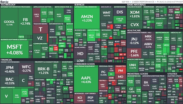 Komponenty indexu S&P 500 v týdnu do 31. srpna 2018