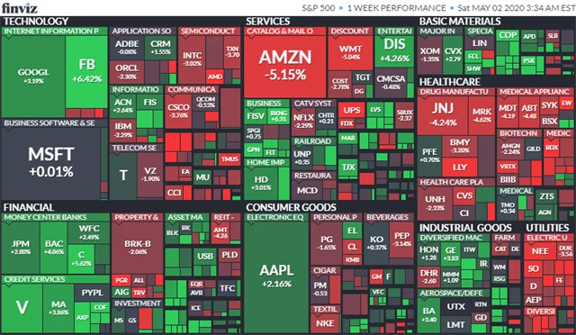 Komponenty indexu S&P 500 v týdnu do 1. května 2020