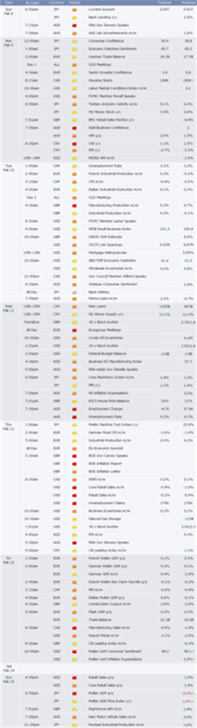Benoît Cœuré z ECB v Paříží promluví o spojitostech měnové politiky a ekonomického růstu. Energy Information Administration v USA vydá týdenní zprávu o zásobách ropy. Sejde se Euroskupina, aby jednala o Řecku a jeho dluzích. V Minsku by mělo dojít ke schůzce ve složení Merkelová-Hollande-Porošenko-Putin, kde by se mělo dospět k dohodě, která naváže na mírové dohody ze září 2014. V průběhu týdne se o ukončení bojů bude jednat na dílčích setkáních.