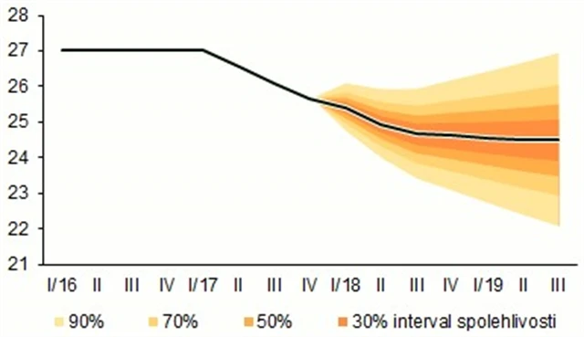 "Prognóza kurzu je spolu s prognózou všech dalších veličin podmíněna přijatými předpoklady prognózy, včetně výhledů zahraničního vývoje," uvedl Rusnok. Dodal, že příchod neočekávaných šoků může vychylovat skutečný vývoj kurzu od prognózy, a to někdy i výrazně.