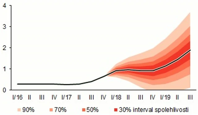 ČNB - prognóza vývoje sazby PRIBOR (3M), zdroj: ČNB