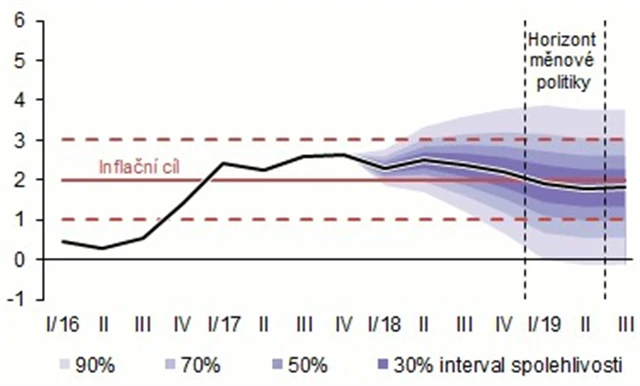 ČNB - odhad vývoje inflace v ČR, zdroj: ČNB