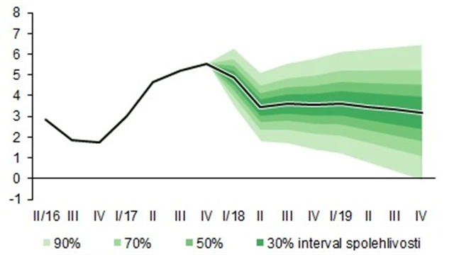 Ekonomická aktivita v Česku se nadále vyvíjí velmi příznivě, meziroční expanze tuzemského HDP v loňském čtvrtém čtvrtletí zrychlila na 5,2 %. Inflace sice od října 2017 nepřetržitě klesá, stále je ale poblíž cílovaných 2 %.