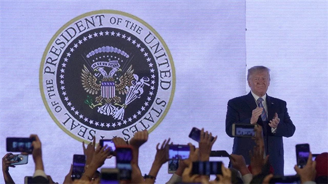 Když Donald Trump řečnil na studentské akci Turning Point USA, kdosi vtipný údajně nechal na plátno za prezidentem promítat americký státní znak. Proč ne? Protože na druhý pohled drží orel namísto svazku šípů golfové hole a namísto motta E pluribus unum (Vše se stává jedním) je ve znaku napsáno 45 es un titere (45. prezident je loutka). A ještě taková drobnost - orel ve znaku není ten správný americký bělohlavý, nýbrž ruská orlice. Podle televize CNN stál autora tento vtípek místo.