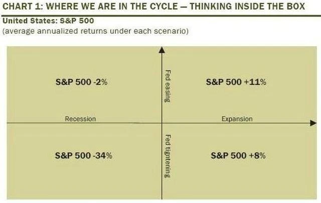 "Nejhůře na tom byly akcie v obdobích recese, a to především v těch obdobích, kdy Fed nepodporoval ekonomiku levnější likviditou," popsal v pátečním komentář Rosenberg.