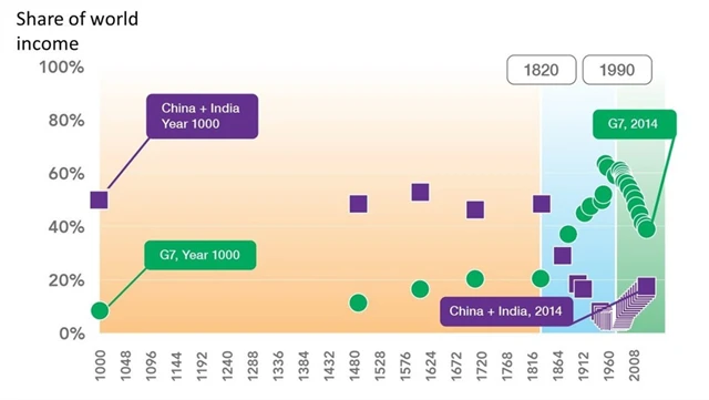 Společnosti začaly ve čtvrté fázi globalizace přesouvat výrobu do méně rozvinutých zemí, jejichž původ můžeme hledat v třetí fázi globalizace. Důsledkem tohoto vývoje je ovšem pokles podílu zemí G7 na světovém HDP na úrovně ze začátku 20. století. Právě proti tomu se nyní zvedla vlna nevole.
