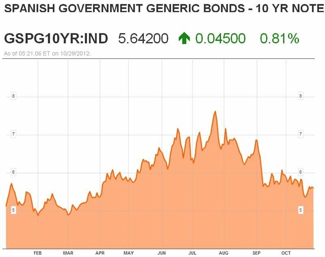 Španělský dluhopisový trh se pomalu staví na nohy. Kombinace globálních supernízkých výnosů a aktivnější ECB pomalu vrací na španělský trh zahraniční kupce. Podle ministra financí Iniga Fernandeze v posledních aukcích podíl zahraničních kupců přesahoval skoro pokaždé polovinu.