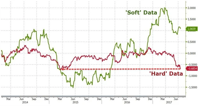 USA - měkká a tvrdá ekonomická data, zdroj: Zero Hedge