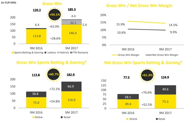 V samotném třetím čtvrtletí dosáhl objem přijatých sázek 558,1 milionu eur (+128,4 %), hrubé výhry činily 85,1 milionu eur (+114,2 %) a zisk EBITDA byl 20,7 milionu eur (+234,6 %).
