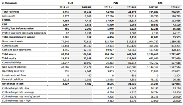 Za celé první pololetí Photon Energy reportovala provozní zisk EBITDA 4,41 milionu eur (1H2017: 4,19 milionu eur) a provozní zisk EBIT 1,65 milionu eur (1H2017: 1,49 milionu eur). Zisk před zdaněním dosáhl 2,21 milionu eur (1H2017: 456 tisíc eur) a zisk z pokračujících operací 1,73 milionu eur (1H2017: 82 tisíc eur).