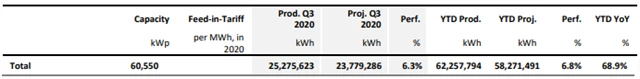Fotovoltaické elektrárny ovládané přímo či nepřímo společností Photon Energy se souhrnným výkonem 60,55 MWp (výkon solárních panelů v bodě maximálního využití za standardních podmínek) do sítě v třetím čtvrtletí dodaly 25,28 GWh elektrické energie. Za prvních devět měsíců roku dosáhla produkce 62,26 GWh, přičemž firma čekala 58,27 GWh. Meziročně se produkce v prvních devíti měsících roku zvýšila o 68,9 %.