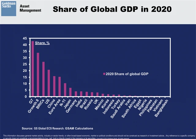 Jim O'Neill z Goldman Sachs, který dal světu zkratku BRIC, ve své březnové prezentaci věnoval výhledu těchto regionů velký prostor. Nejdůležitější grafy snad ani nepotřebují komentář.