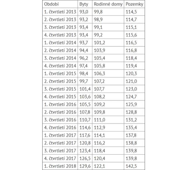 Tržní ceny bytů, rodinných domů a pozemků v Česku v prvním čtvrtletí 2018 meziročně dále rostly. Nejvíce zdražily byty, nejméně pozemky. Byty zdražily nejvíce také v porovnání s posledním čtvrtletím loňského roku, ceny stagnovaly pouze v Ústeckém kraji. Uvedla to Hypoteční banka.