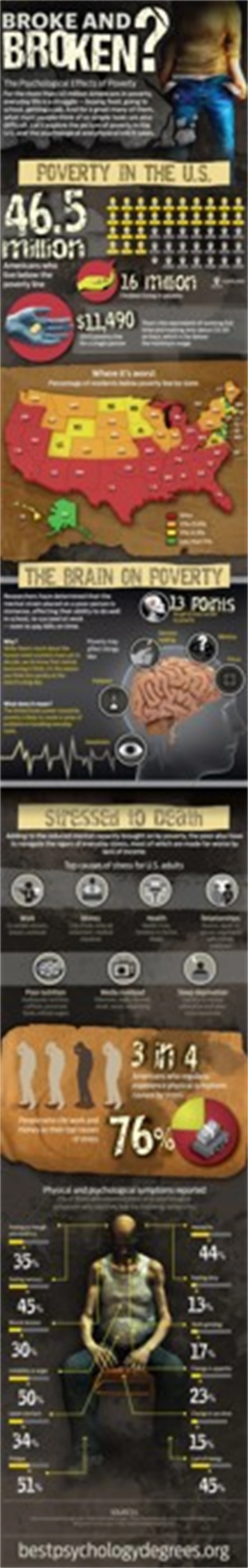 O tom, jak velkým problémem chudoba v současném světě je, svědčí i četné psychologické výzkumy. Podle nich totiž život v bídě ani zdaleka neznamená jen to, že si lidé musejí mnohé věci úplně odepřít. Výrazně negativní vliv má prázdná peněženka i na kognitivní funkce lidské psychiky, především na schopnost soustředění, pozornost, trpělivost a paměť. Některé výzkumy dokonce tvrdí, že status chudoby snižuje lidskou inteligenci, a to ve vyjádření inteligenčního kvocientu (IQ) až o 13 bodů.