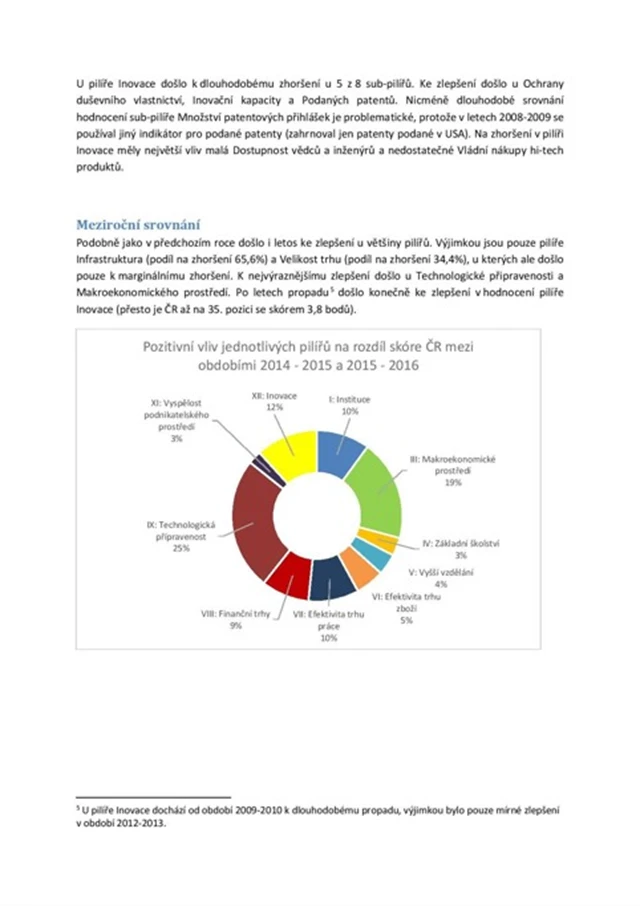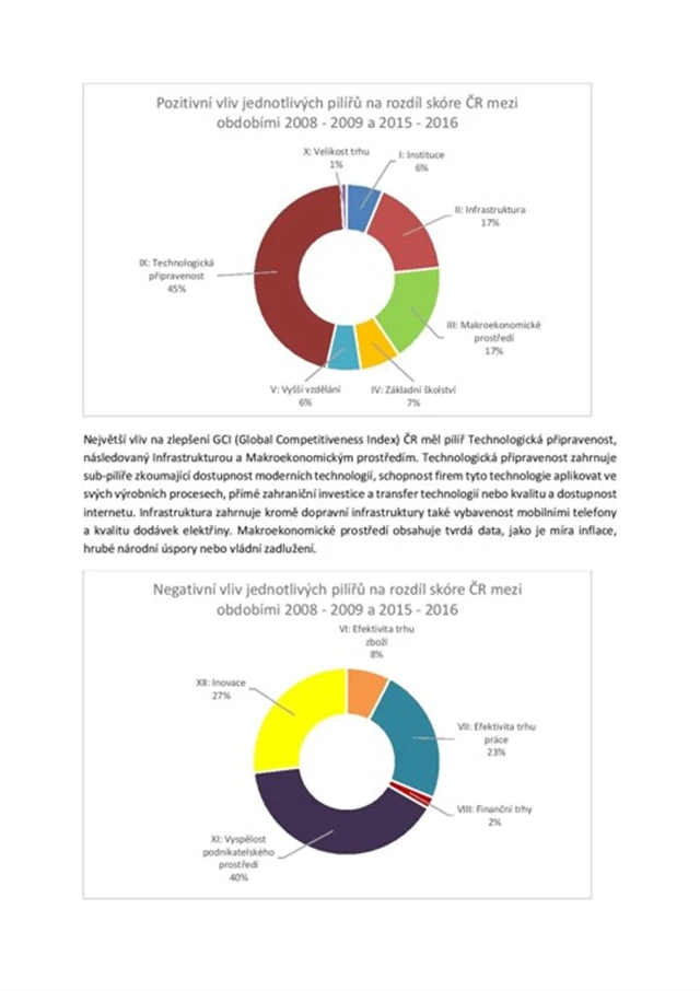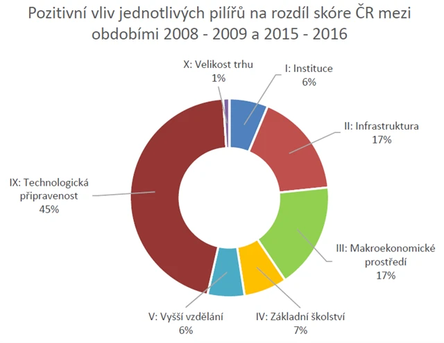 Největší vliv na české zlepšení v rámci GCI (Global Competitiveness Index) měl pilíř Technologická připravenost, následovaly Infrastruktura a Makroekonomické prostředí.