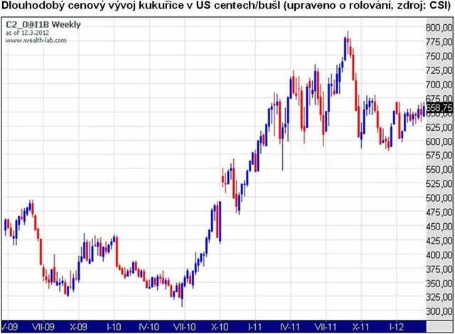 Cena kukuřice se už poměrně dlouho pohybuje v obchodním pásmu. Její spotřeba rychle roste, přičemž nabídka nestačí dostatečně pružně reagovat na tento vývoj. Globální zásoby kukuřice jsou proto relativně nízké, přičemž důležitý poměr zásob ke spotřebě poklesl na nejnižší úroveň od roku 1974. I menší produkční výpadek způsobený špatným počasím může mezi spotřebiteli i investory vyvolat strach z krátkodobého nedostatku.
