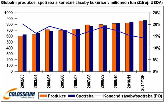 Podle odhadu Ministerstva zemědělství USA (USDA) by se v současné sezóně 2011/12 mělo globálně spotřebovat 869 milionů tun kukuřice, což je o 4 miliony více oproti produkci. V předešlých dvou sezónách byl také dosažen produkční deficit v rozsahu 15, respektive 3 milionů tun.
