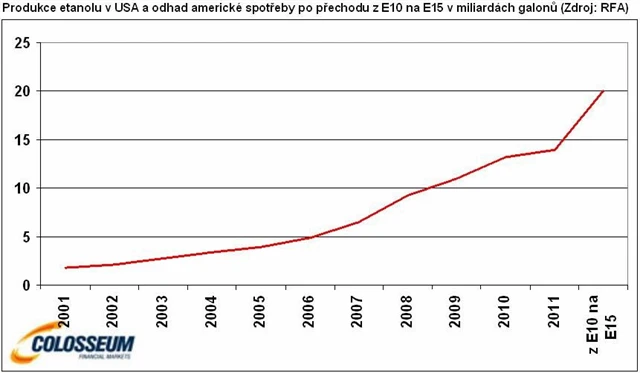 V následujících letech se předpokládá další postupné zvyšování spotřeby kukuřice v etanolovém průmyslu. 95 % benzínu prodávaného v USA obsahuje příměs etanolu. Nejčastěji se jedná o 10% příměs (E10). V nejbližších letech by měl vzrůst podíl etanolu v benzínech na 15 % (E15). Kvůli tomu by americká poptávka po etanolu měla vzrůst na 20 miliard galonů ročně. Proces přechodu z E10 na E15 bude pravděpodobně urychlen v důsledku prudkého růstu cen ropy na světových trzích.
