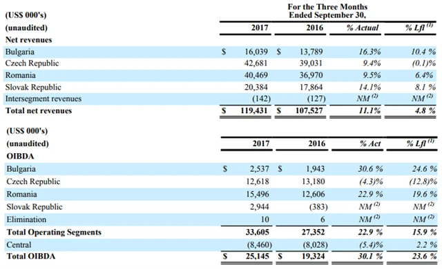 V aktualizovaném výhledu zveřejněném během konferenčního hovoru k výsledkům za třetí čtvrtletí společnost uvedla, že čeká dosažení růstu zisku OIBDA při horní hraně dříve oznámeného rozpětí 13-17 %. Stejně tak volné cash flow nezatížené úroky a garančními poplatky by se mělo pohybovat u horní hrany dříve oznámeného pásma 105-110 milionů USD.