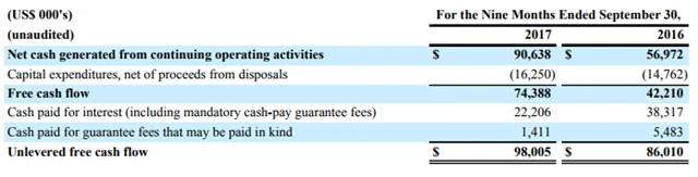 Volné cash flow CME nezatížené úroky a garančními poplatky se za první tři čtvrtletí roku meziročně zvýšilo z 86,01 milionu USD na 98,01 milionu USD. Na úrocích skupina zaplatila 22,21 milionu USD po 38,32 milionu USD v prvních devíti měsících roku 2016. Garanční poplatky se snížily z 5,48 milionu USD na 1,41 milionu USD.