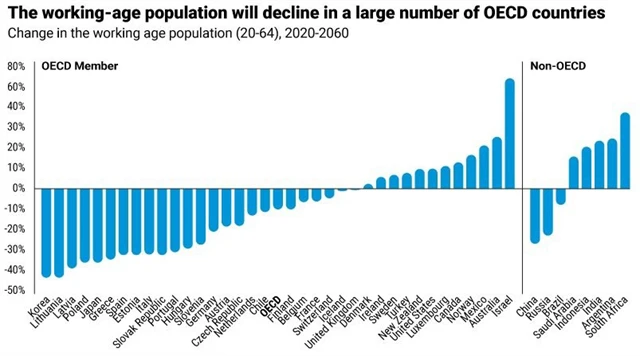 Ve vyspělém světě je rostoucí střední délka života v kombinaci s klesající porodností problémem již nějakou dobu, trendy se ale začínají projevovat i na rozvíjejících se trzích. V následujících čtyřech dekádách by výrazně měly zestárnout třeba i Čína, Rusko nebo Brazílie. Celosvětový počet lidí v produktivním věku by se měl podle OSN do roku 2060 snížit o desetinu, o více než třetinu v Jižní Koreji, Litvě, Lotyšsku nebo Polsku, Japonsku a Řecku. Zvýšit by se naopak měl počet lidí v produktivním věku v Izraeli, Austrálii nebo třeba v Mexiku.