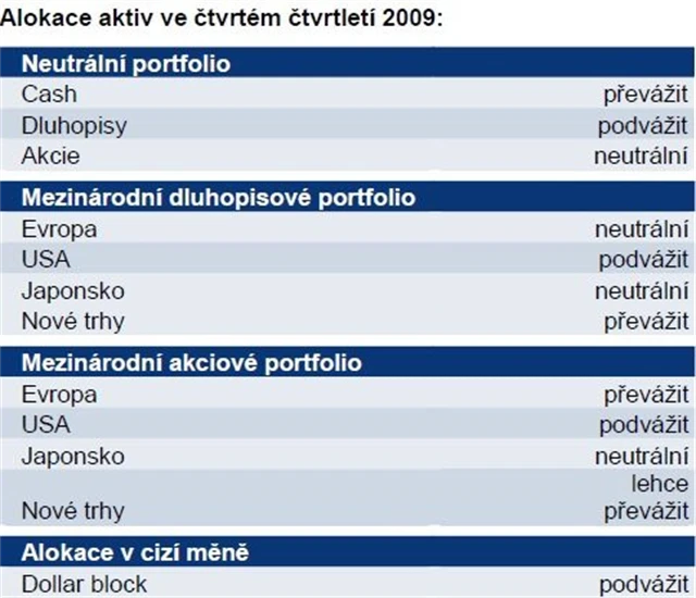 Celkově podpoří americké hospodářství ve druhém pololetí roku 2009 dočasné faktory. V příštím roce se očekává jeho opětné zpomalení, ale nemělo by znovu sklouznout do recese. Ekonomický výhled pro rok 2010 je bezútěšný, i když započítáme americké vládní stimulační balíčky včetně likviditní injekce ze strany FEDu. Spotřebitelská poptávka zůstane tlumená, od investic očekáváme kvůli nadměrným kapacitám to samé. Americká centrální banka zůstane středem pozornosti. FED pumpoval do ekonomiky obrovské množství likvidity a to bezprecedentním způsobem. Proto ho příští rok čeká těžký úkol: odstranit likviditu z ekonomiky po správných dávkách. Unáhlené vyjmutí likvidity může vést k potlačení ekonomiky. Na druhou stranu může opožděná akce vyvolat nepřetržitý růst míry inflace.