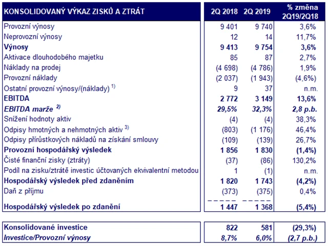 "Nárůst počtu zákazníků se již pozitivně projevil v našich výnosech za první pololetí 2019. Zatímco provozní zisk meziročně vzrostl o více než 12 %, zvýšené investice v loňském roce vedly k nárůstu odpisů a meziročnímu poklesu čistého zisku," dodal finanční ředitel Tomáš Kouřil.