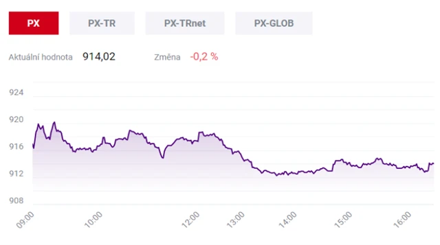 Pražská burza v pondělí popáté v řadě oslabila, v úvodu týdne index PX klesl o 0,2 % na 914,02 bodu. Nedařilo se především rakouským titulům, ztratily i MONETA Money Bank nebo ČEZ. Naopak se ziskem téměř dvou procent uzavřely seanci akcie technologické firmy Avast, mírněji vzrostly cenné papíry operátora O2.