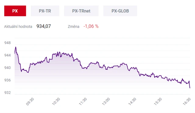Pražská burza potřetí v řadě oslabila, index PX ve čtvrtek klesl o 1,06 % na 934,07 bodu. Nejvýrazněji oslabily, stejně jako ve středu, akcie bankovní skupiny Erste.