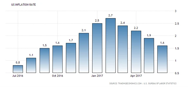 Proč? V první řadě proto, že inflace zaostává za očekáváním. Poslední kapkou byla červnová data o vývoji spotřebitelských cen. Ty navzdory předpokladům meziměsíčně vůbec nevzrostly a meziročně byly vyšší jen o 1,6 %. Řada centrálních bankéřů přitom v posledních týdnech upozorňovala na nedostatečné inflační tlaky.