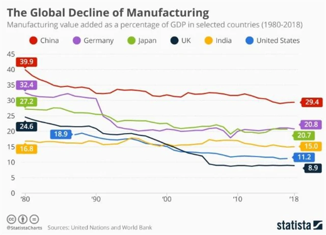 - Globální trend poklesu průmyslové výroby není ničím pozitivním pro země, jejichž prosperita se od tohoto sektoru odvíjí.