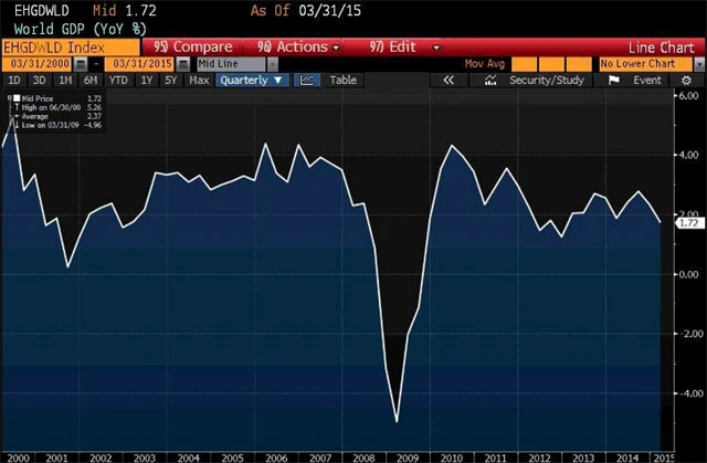 Turbulentní vývoj na komoditních trzích v létě 2015, obavy ze zpomalování druhé největší ekonomiky světa i geopolitické faktory otřásly výhledy růstu světového HDP na rok 2016. Mezinárodní měnový fond a OECD snížily své odhady růstu globální ekonomiky někam ke 3 %. Americká ekonomika by si měla udržet solidní tempo růstu kolem 3 %, ta čínská bude dále zpomalovat (k 6,5 %) a ekonomika eurozóny pravděpodobně poroste nejbližší dva roky tempem těsně pod hranicí 2 %.