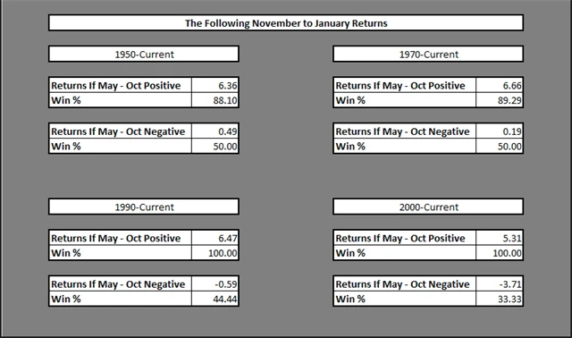 Za posledních 20 let bylo období října až prosince nejsilnějším za celý rok. Platí to zejména během let, kdy se v USA konají volby v polovině prezidentského mandátu. V těchto letech trhy přešlapují až do čtvrtého kvartálu, kdy odstartuje rally. Ta pokračuje zpravidla do třetího roku prezidentského mandátu, kdy bývají akciové výnosy nejvyšší.