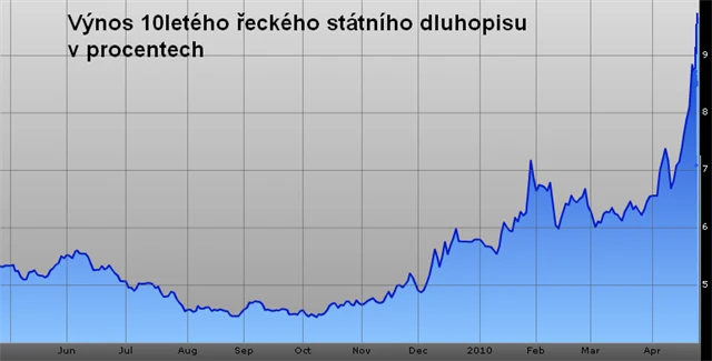 Asi všem, kteří se o Řecko alespoň trochu zajímali, bylo jasné, že tato země není sama schopna tento problém vyřešit a bude muset žádat pomoc. Jenže, trhy stále nejsou "spokojeny", i když Řecko o pomoc zažádalo. To dokládá i vývoj řeckých 10letých úrokových sazeb, které po oznámení pomoci (měly by teoreticky klesnout) razantně poskočily směrem k 10 %. Nový historicky rekord.