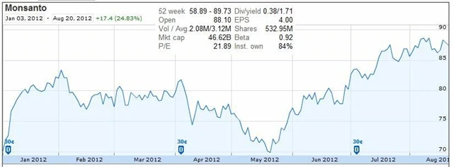 Zemědělská firma vyrábí a prodává herbicidy a geneticky upravená semena, která jsou navržena ke zvýšení úrody. Chemický postřik na ochranu před plevelem RoundUp je i v maloobchodech. Byznys Monsanta nicméně čelí několika problémům: firma bude muset především napravit pošramocené vztahy s farmáři před tím, než jí vyprší patent na osivo RoundUp-Ready v roce 2015.
