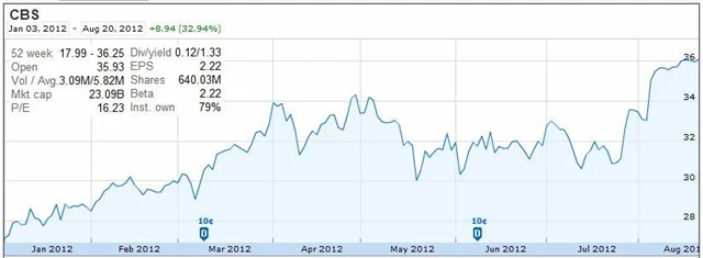 CBS není dividendovou akcií v pravém slova smyslu, dividendový výnos je zatím jen něco přes 1 %. Management je však ochotný vyplácet více hotovosti, což působí slibně. Firma vlastní velké portfolio mediálních aktiv, které mají spotřebitelé v USA každý den na očích (TV kanál Showtime, CBS Radio, Simon & Schuster a King World Productions).
