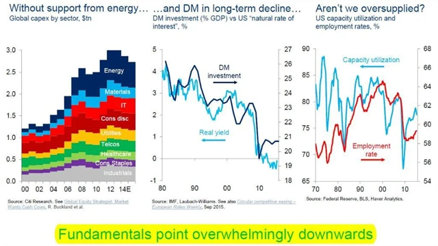 V důsledku to bude mít neblahý vliv také na reálnou ekonomiku. Bez pozitivního vlivu investic v energetickém sektoru a investic v mladých ekonomikách dojde podle Kinga k bezprecedentnímu růstu zásob, což zvyšuje tlak na využití výrobních kapacit, míru zaměstnanosti a při likvidaci zásob na HDP.