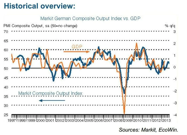 Zpracovatelský sektor v Německu v říjnu expandoval více, než se čekalo. Index vyskočil na 51,7 bodu z 51,1 bodu v září, přestože předběžné odhady počítaly jen s růstem na 51,5 bodu. Sektor v říjnu vykázal růst produkce šestý měsíc v řadě, mírně se zlepšily i nové zakázky, zatímco zaměstnanost v sektoru mírně klesla. Index nákupních manažerů ve službách v říjnu klesl na 52,9 bodu z 53,7 bodu v září. Čekal se však větší pokles. Kompozitní index zůstal stejný jako v září. Dosáhl 53,2 bodu.