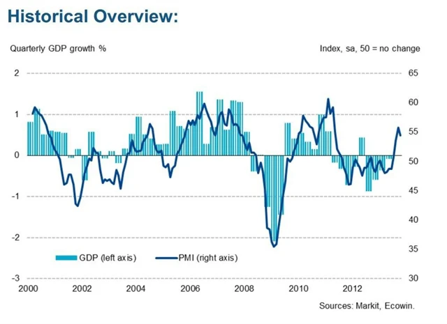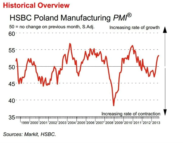 Index nákupních manažerů v Polsku rostl šestý měsíc v řadě na 53,4 bodu, nejvíce od dubna 2011, tažený především expanzí v objednávkách do zahraničí. Zakázky do zahraničí rostly pátý měsíc v řadě, nejdéle za posledních dva a půl roku.