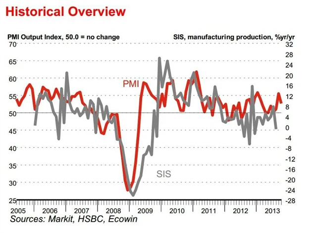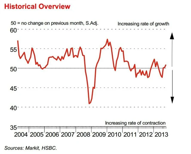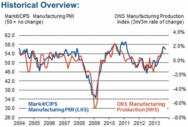 Podle agentury Markit ze zářijové hladiny 52,8 bodu index spadl na 51,8 bodu, překonal však předběžný výsledek, který byl mnohem pesimističtější na 51,1 bodu. Produkce i nové zakázky dále rostou, ačkoliv pomalejším tempem. Oproti září se přes padesátibodovou hranici přehoupl indikátor zakázek ze zahraničí a rychleji rostla i zaměstnanost v sektoru a ceny vstupů a výstupů.