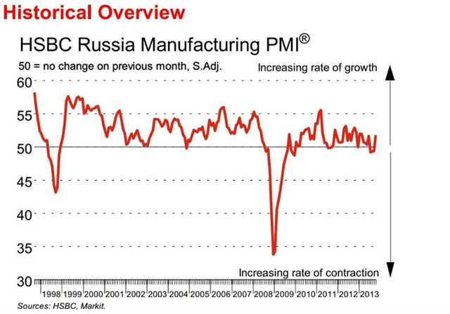 Zpracovatelský sektor v Rusku v říjnu podpořilo především zesílení domácí poptávky. Nové zakázky rostly nejrychleji za posledních osm měsíců, což vedlo k nejsilnějšímu růstu produkce za poslední rok. Index nákupních manažerů vyskočil na 51,8 bodu po několika měsících, kdy se nacházel pod padesátibodovou hranicí.