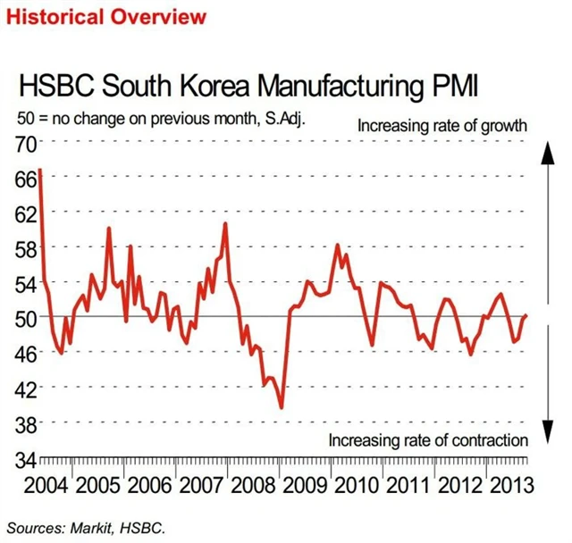 Zpracovatelský sektor v Jižní Koreji v říjnu expandoval a přehoupl se přes hranici 50 bodů dělící expanzi od kontrakce. Index dosáhl 50,2 bodu z 49,7 bodu v září.
