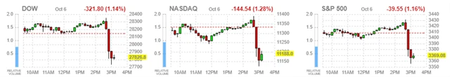 Americké akciové indexy po Trumpově oznámení prudce oslabily, zdroj: FINVIZ